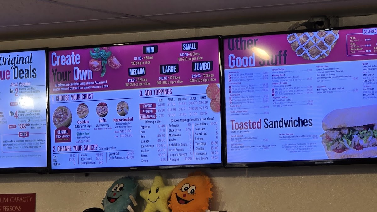 The half-and-half jumbo pizzas are a popular choice, allowing for a personalized dining experience. Regulars appreciate the friendly staff and the consistent quality over the years, with many expressing nostalgia for features like the long-lost salad bar and lunch buffet. Customer Jeff Studley highlights the delicious specials, while Dawn Cain emphasizes the warm atmosphere.